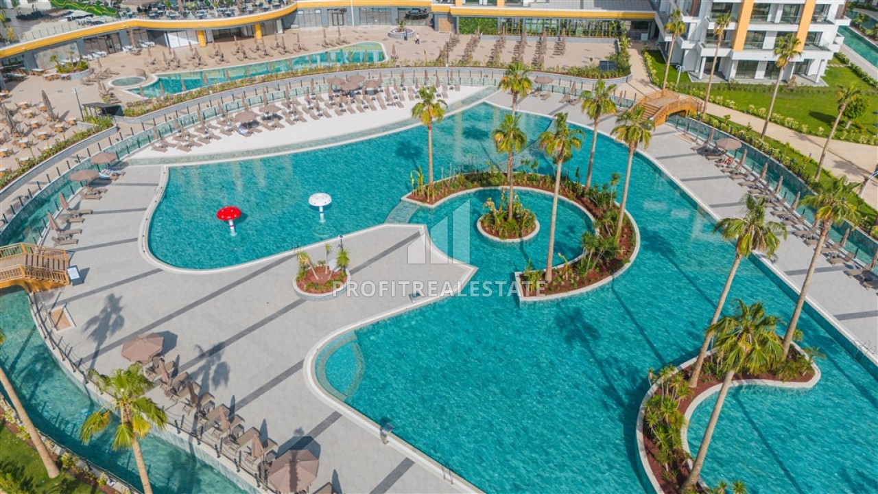 The residence offered to your attention is one of the largest and most unique projects in the Anatolian region. Thanks to a unique concept and an excellent architectural ensemble, the new project perfectly emphasizes the 40-year experience of the developer company as a quality and reliable partner! The great advantage of this residence is its geographical position. On the one hand, it is located near the Mediterranean Sea, and on the other, it is surrounded by orange orchards.