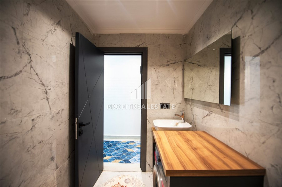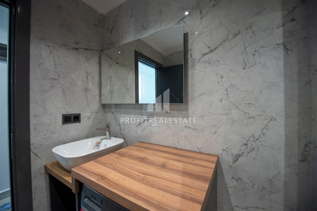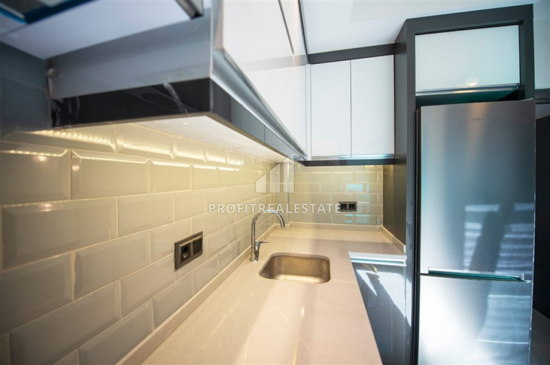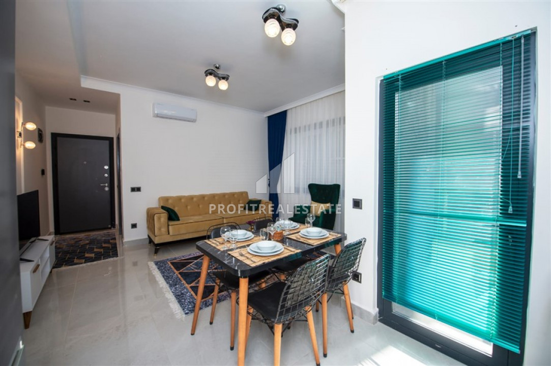 Looking for a small and move-in ready apartment? And in a new residence and not far from the sea? Take a look at our offer! For sale from the owner are one bedroom apartment, fully equipped with furniture and household appliances. They occupy the first high floor and are part of a residence built in 2021, just 350 meters from the sea coast and 300 meters from the center of the popular Mahmutlar area.