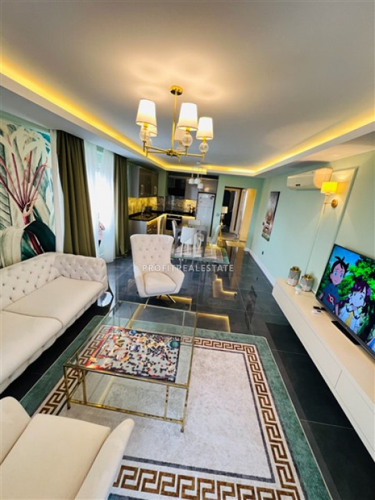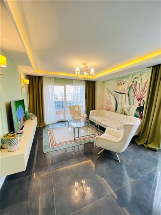 With a 2 + 1 layout, the apartment include an entrance hallway, two bedrooms, a living room with an Open plan kitchen, two bathrooms and two balconies equipped with sliding glass panels. We add that the apartment is very bright and comfortable. It has a professional design, as well as a fine finish that maintains the overall style. In addition, it is equipped with elegant furniture and household appliances. All this is included in the declared price.