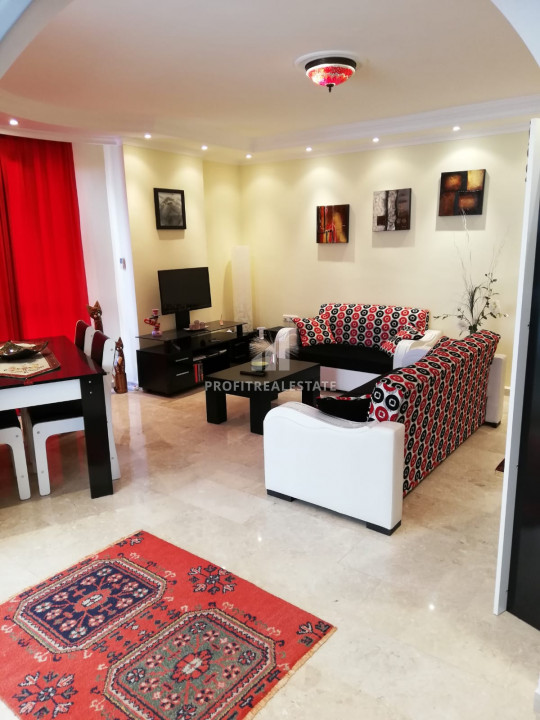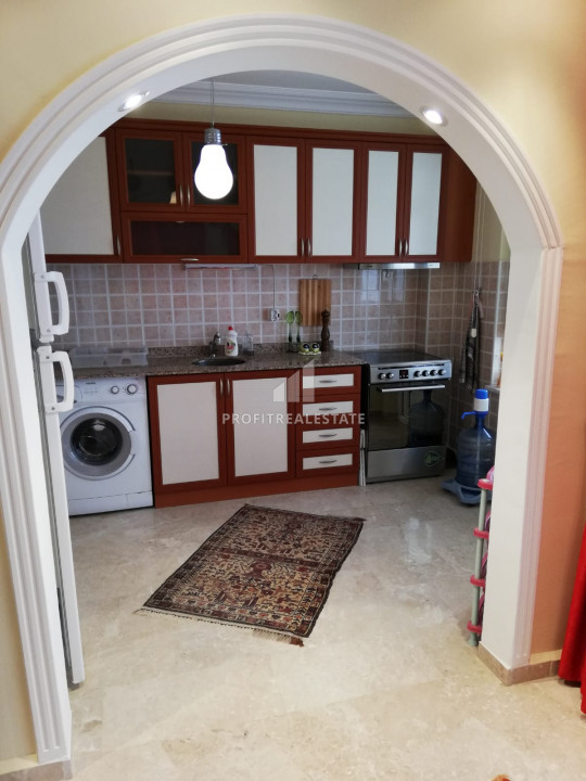 If you want to buy an apartment with a good location, close to the sea, with furniture and appliances - pay attention to our new offer! The owner put up for sale an apartment, 2 + 1 layout in a house with sufficient facilities for a comfortable life. For your comfortable stay there are: a garden with ornamental plants, an outdoor swimming pool with a children's section, a sauna, a hammam, a gym, and a car park. The residence is located in a closed area and has an excellent location: closer to the mountains, surrounded by banana plantations and citrus orchards.
