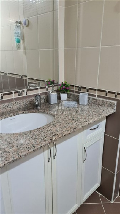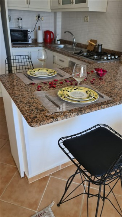 If you love the sea, want to visit it as often as possible, but not depend on tour operators, but do not have a significant budget, then do not miss out on a really great offer - apartment at an affordable price and completely ready to move in. One-bedroom apartment for sale, with an area of 50m², with an original layout, located on the 5th floor in a residence built in 2005. The 1 + 1 layout provides for a small cozy living room combined with an open kitchen, a spacious bedroom, an entrance hall with a built-in wardrobe, a bathroom equipped with all necessary fixtures and a spacious balcony. The living room has nice upholstered furniture. A functional bar counter separates the kitchen area from the living room and acts as a dining area. A corner kitchen set with a granite work surface, plenty of storage space for kitchen utensils, with a set of household appliances. The bathroom has a washing machine and a storage boiler, high-quality furniture and sanitary ware. The glassed-in balcony offers a view of the well-groomed local area and, visible in the distance, the Taurus mountains. The price includes: furniture, appliances, air conditioners, as shown in the photos.