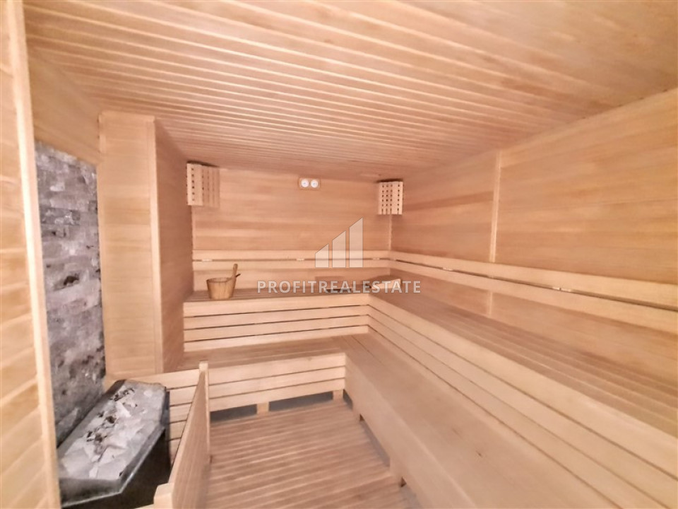 The residential residence, of which the apartment presented to you is a part, was built in 2015, at a distance of 300 meters from the sea and 500 meters from the center of Mahmutlar. At the same time, it has a laconic internal facilities that meets all the necessary requirements for a comfortable stay. Here you will find an outdoor swimming pool, with a dedicated children's section and equipped with sun loungers and parasols, a sauna and a fitness area. A landscaped garden is laid out in the fenced area, and the manager keeps order.
