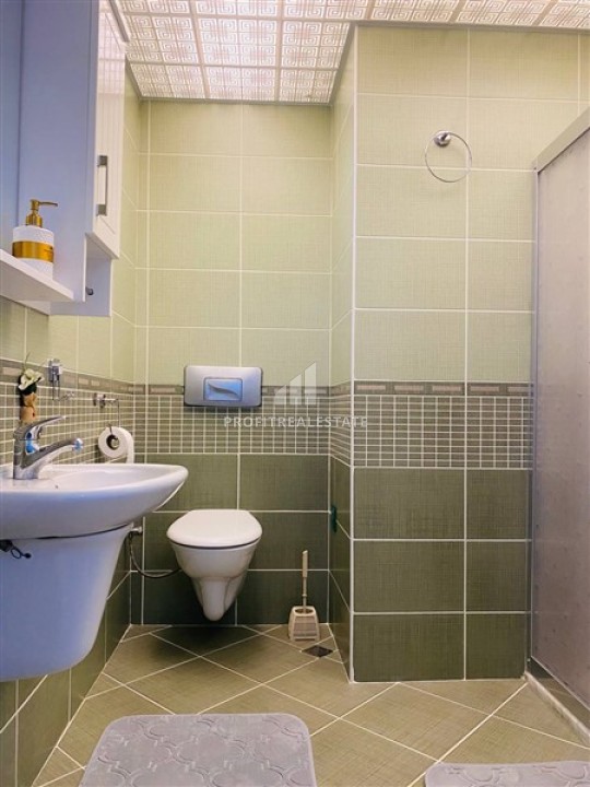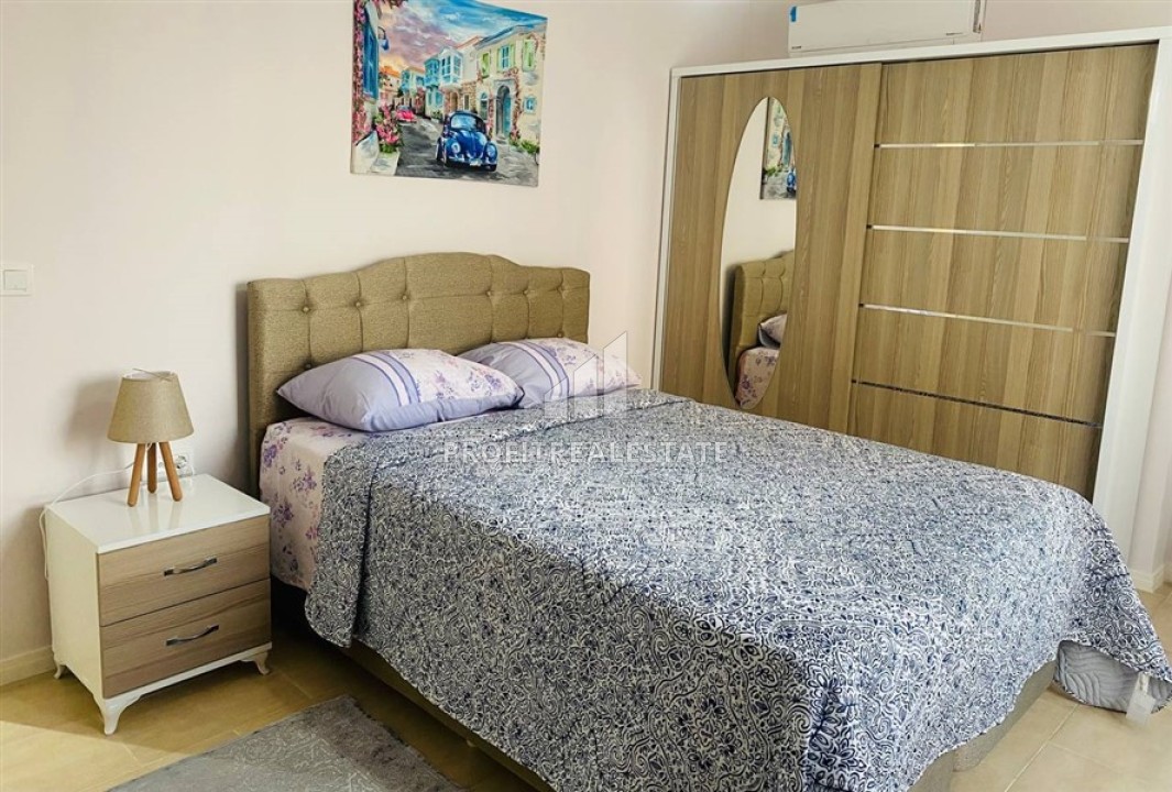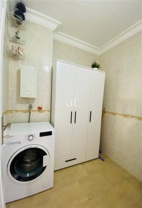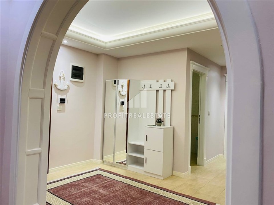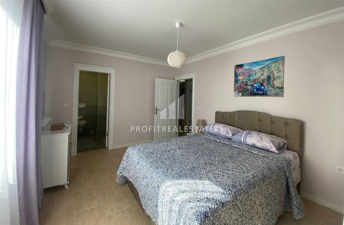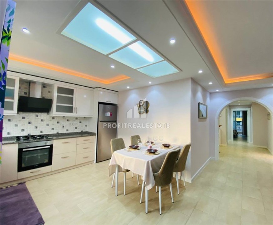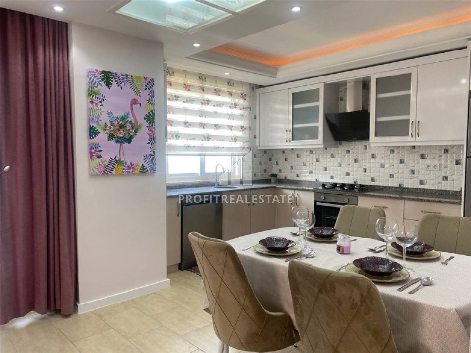 The apartment, layout 2 + 1, with a total area of 135m² has a spacious living room combined with a kitchen area, which is separated from the main space by a dining area for 4 people and is located in a kind of niche. In the recreation area - high-quality beautiful upholstered furniture, a cabinet with a TV, decorative shelves. Corner kitchen - with a full set of household appliances, plenty of storage space for kitchen utensils, granite countertops with a spacious work area. The bedrooms are furnished with all necessary furniture. There is a spacious wardrobe for outerwear and shoes in the large hallway. Two spacious bathrooms are fully equipped with quality furniture and bathroom equipment. The apartment is oriented to the north and south. The large southern balcony overlooks the well maintained territory of the residence and, seen in the distance, the Mediterranean Sea. From the northern balcony you can see the central street of Mahmutlar, with a variety of social facilities.