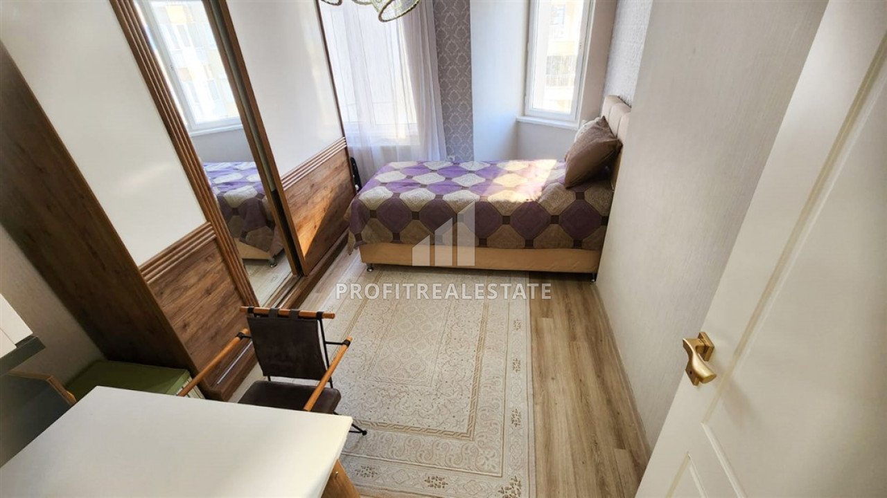 It located on the 8th floor and is part of a residential residence built in 2003 in Caglayan - one of the microdistricts of the Lara, Muratpasha, Antalya districts. At the same time, its facilities is represented by an extensive range of services, including an outdoor swimming pool, parking, a children's play park, a gas supply system, and video surveillance cameras. The caretaker keeps order.