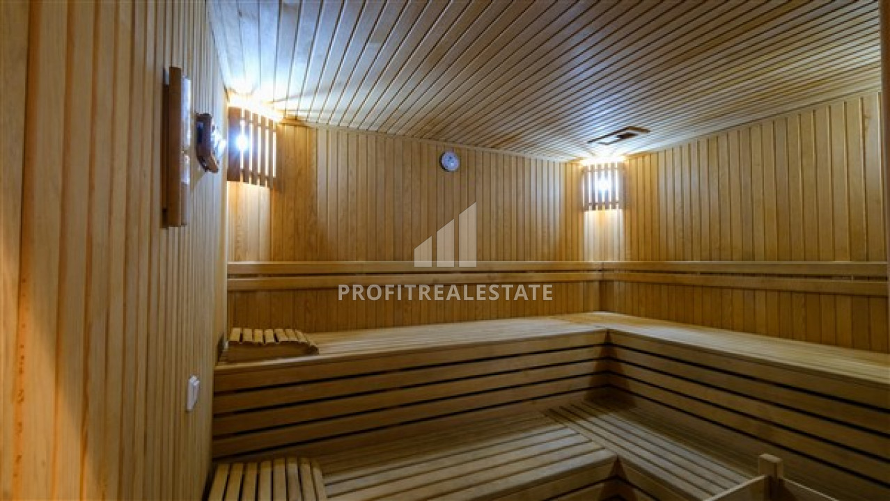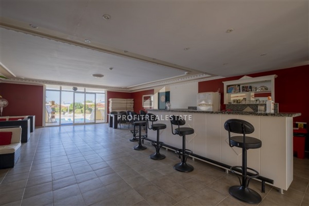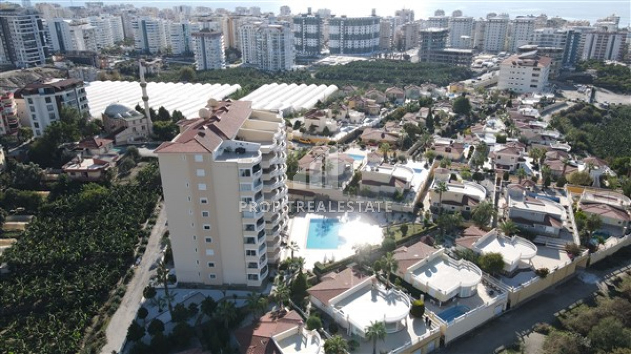 As for the residence, it was built in 2008 at a distance of 1000 meters from the sea and 600 meters from the center of the popular Mahmutlar area, and is represented by one multi-storey blog, as well as well-thought-out internal facilities. Among the services available to the owners, it is necessary to note an outdoor pool, a sauna, billiards, table tennis, an electric generator. A landscaped green garden is planted on the fenced house territory, a playground, a pergola for relax and parking are open. The caretaker keeps order in the residence. Aidat is 500 lira, but this amount already includes the subscription fee for the Internet.