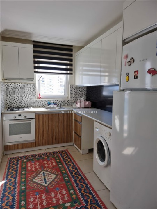 An excellent offer from Profit Real Estate for those who like turnkey apartment in a residence with sufficient facilities, furniture and household appliances. From the owner we offer you an apartment 1 + 1, with an area of 70m². The apartment are located on the 8th floor of a residence built in 2014, consisting of two 11-storey buildings. The residence has a closed area with a beautiful garden and sufficient facilities that will allow both adults and children to enjoy living or relaxing, but does not imply a high monthly maintenance fee. Aidat is only 150Tl (about 15€). The new owners will be pleased with the excellent location of the residence: just 250m from the well-maintained promenade and the beach, and 150m from the center of the district, and will provide an opportunity to enjoy a calm, measured life within walking distance to the entire urban and social facilities of a well-developed area. To the farmer's market on Saturdays - no more than 5-7 minutes on foot. Near the residence you will find chain stores, fish and vegetable shops, cafes, restaurants, bakeries, pharmacies, parks and playgrounds, public transport stops, from where you can easily get to the city center and its other areas. On the ground floor of one of the blocks of the residence there is a large professional fitness club, and next to it is an indoor mini-football field.