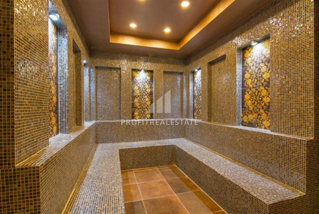 The residential residence was built in 2017 and has excellent internal facilities. Here, for the comfort of residents, a "smart home" system has been installed, as well as CCTV cameras that will ensure your safety. In the green surrounding area you will find a large swimming pool with water slides, a children's pool and a playground. In addition, there are: an indoor heated pool, a sauna, a hammam and a fitness center. If you like to watch movies in the evenings, you can use the services of a mini-cinema. In addition, the residence has a generator. The caretaker keeps order. But the main and indisputable advantage of this residence is its location - after all, the distance to the sea will be only 200 meters, and to the center of Mahmutlar - 150 meters. Thus, your road to the beach will take no more than 5 minutes, and the central area always has its undeniable advantages.