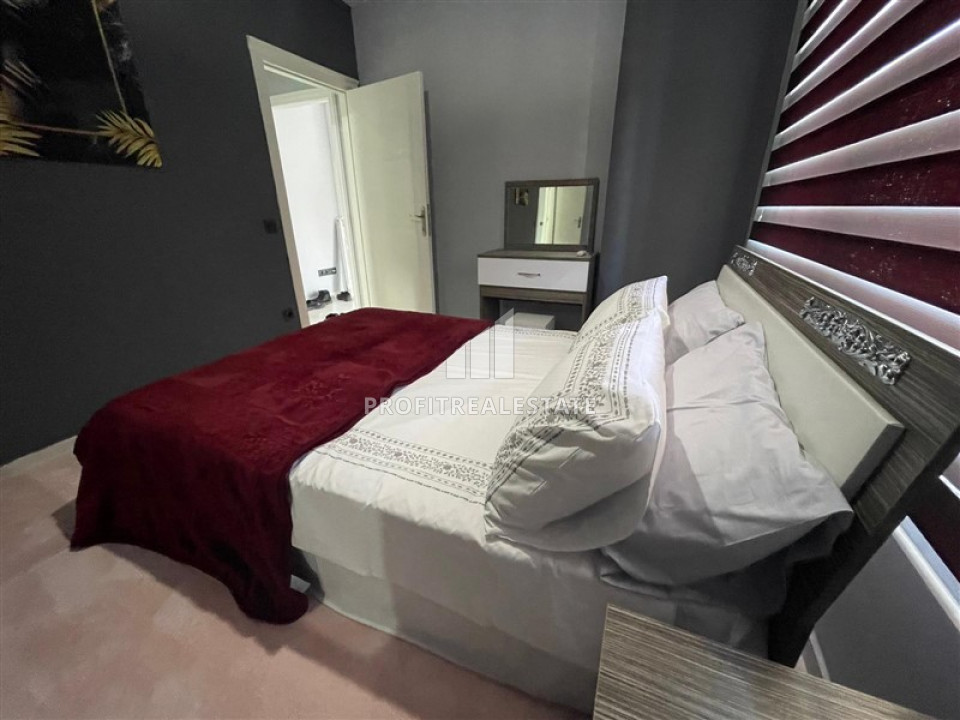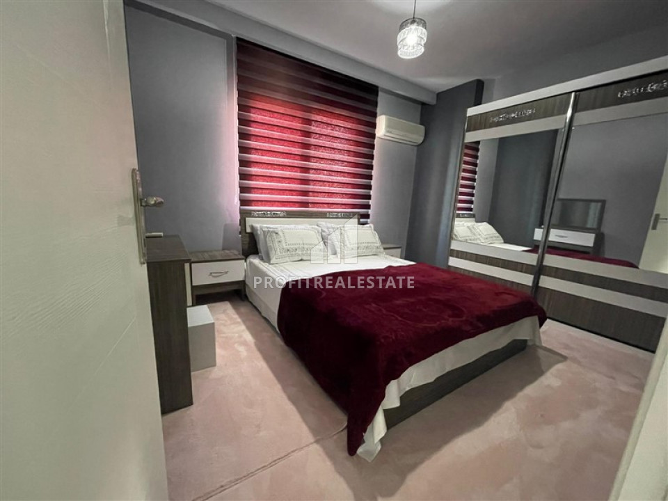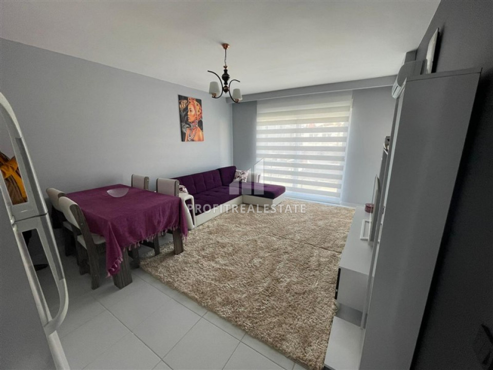 In the most densely populated and developed, international and cheerful area of Alanya, Mahmutlar, an apartment is put up for sale by the owner, with a good area of -62m² and a 1 + 1 layout. This layout provides for a living room combined with a kitchen, which the owners have updated and equipped with new furniture and household appliances. One bedroom is furnished, there is a small hallway area. The apartment have one, equipped with the necessary furniture and sanitary ware, a bathroom and a large comfortable balcony, which, if desired, can be glazed. The apartment is sold with a full package of furniture and household appliances, as shown in the photo.
