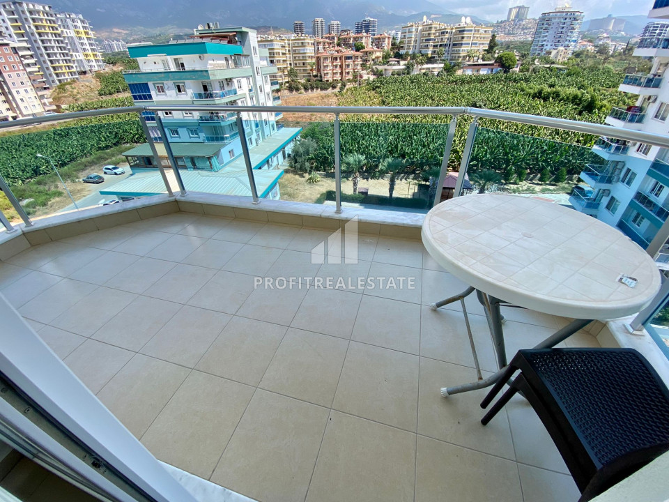 The layout of the apartment includes a living room combined with an open kitchen, a bedroom, a spacious bathroom, a corner balcony with outdoor furniture with excellent views of the banana plantations and the Taurus mountains. The apartment is oriented towards the north-east, which will provide you with an abundance of sunshine, but will protect you from the excessive heat in the summer months. The apartment is being sold with an excellent renovation, matched furniture and household appliances, dishes, textiles and accessories, as in the photo.