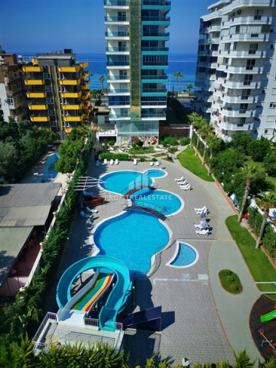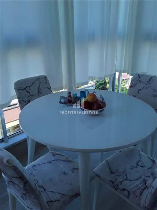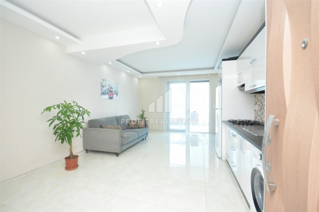 Would you like to buy a small apartment by the sea for relax or rent it out? We have a great offer! Studio apartment with a total area of 45 sq. meters, which is part of a residential residence built in 2018 on the first coastline of Mahmutlar, Alanya. But besides a good location, this offer has a number of advantages. First of all, the fine finish, ceiling design and spotlights. Secondly, a large panoramic window to the floor, which visually enlarges the space and fills the room with light. Thirdly, the presence of furniture and household appliances, due to which the apartment is already ready to move in.