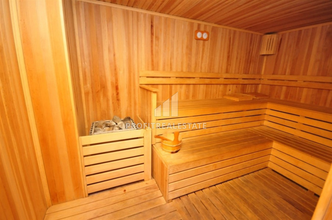 The apartment occupy the sixth floor of a residential building, which was built in 2018 and is the only building of the residence with a rich facilities. Here you will find two swimming pools: an outdoor swimming pool equipped with water slides and an indoor swimming pool equipped with a water heating system. There is also a Turkish hammam and sauna. Sports enthusiasts will appreciate the availability of a fitness room, and an outdoor parking is provided especially for car owners. The manager keeps order.