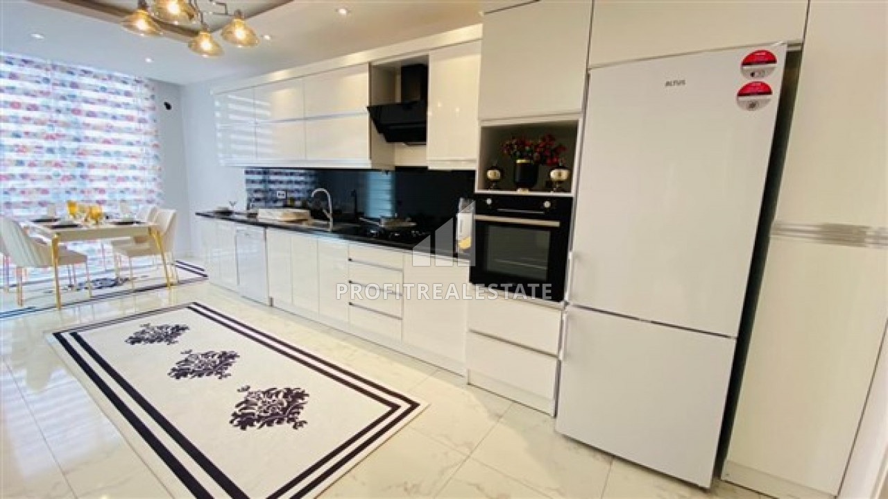 Furnished view apartment with three bedrooms and a separate kitchen in the new residence of Mahmutlar