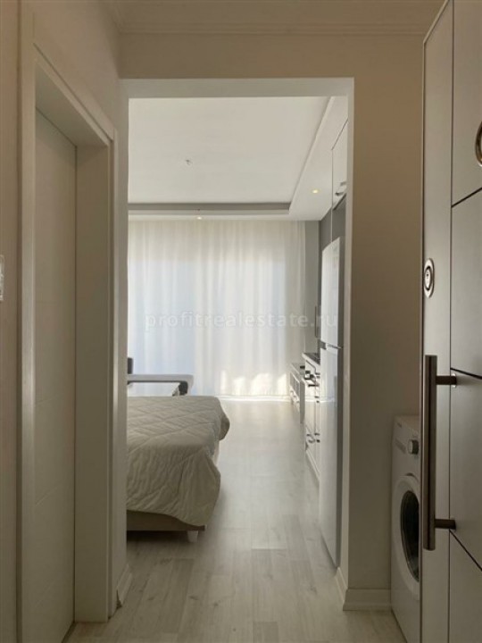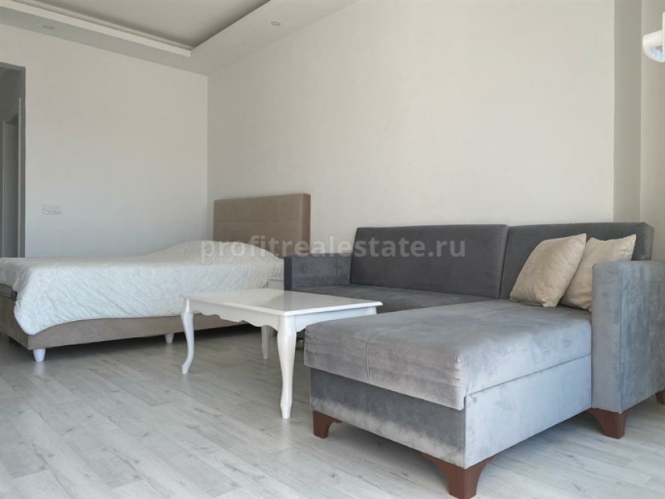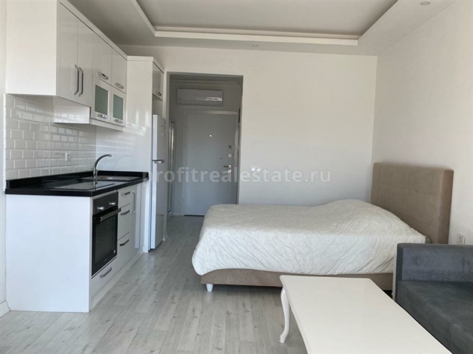 In the popular area of Mahmutlar, just 450 meters from the sea, a cozy studio apartment is for sale, which has a fairly large total area of 45 square meters. With a 0 + 1 layout, it is represented by one room combined with an open kitchen, one bathroom and a balcony. Note that the apartment has a high-quality finish, laminate flooring, two-level ceilings are equipped with combined lighting and large PVC windows facing south. In addition, a package of furniture and household appliances presented in the photo will be an excellent bonus to the declared value. This offer is ideal for those who are looking for a holiday property by the sea, as an alternative to a hotel, or considering it as an investment and income from renting an apartment.