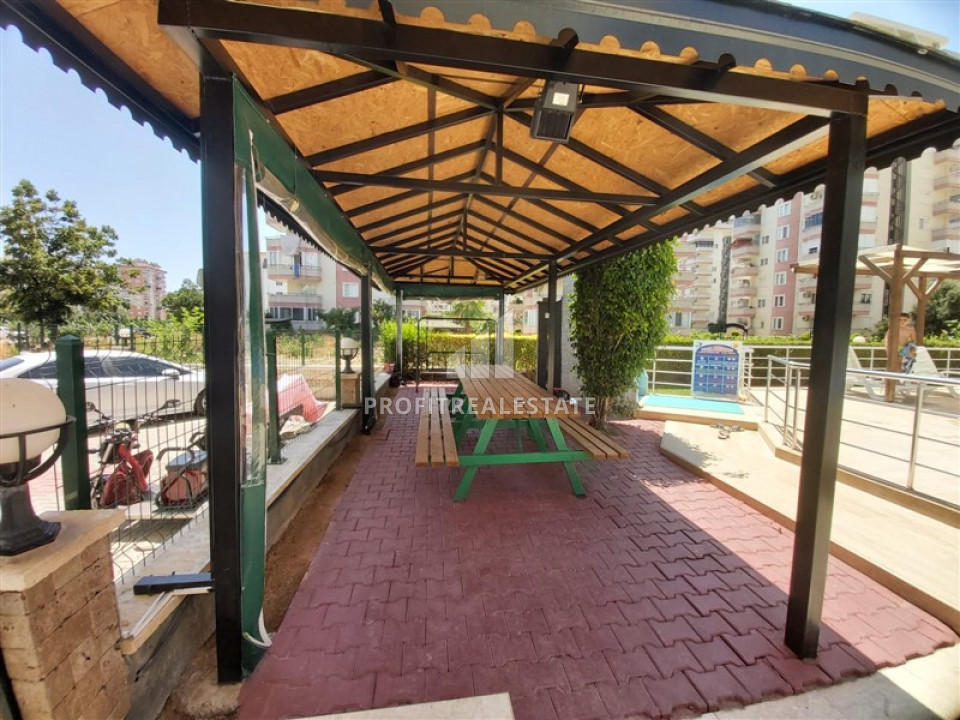 The apartment, layout 2 + 1 and a total area of 125m² has a spacious living room with nice upholstered furniture, a large separate kitchen with enough space for storing utensils, a granite countertop with a spacious work surface. The bedrooms are furnished with all necessary furniture. There is a spacious wardrobe for outerwear and shoes in the large hallway. Two spacious bathrooms are fully equipped with quality furniture and fixtures. Two large balconies are glazed, which will allow you to comfortably spend time with a cup of coffee, watching the majestic Taurus Mountains. The apartment are located on the 5th floor of a residence built in 2006. The residence has a large closed, guarded area, with a well-groomed garden with ornamental plants, a swimming pool with umbrellas and sun loungers, a large pergola for relax and a barbecue. For the comfort of residents, there is an open car and bicycle parking and an electric generator on the territory. The facilities is small, but quite sufficient for a comfortable stay and does not imply a high monthly maintenance fee.