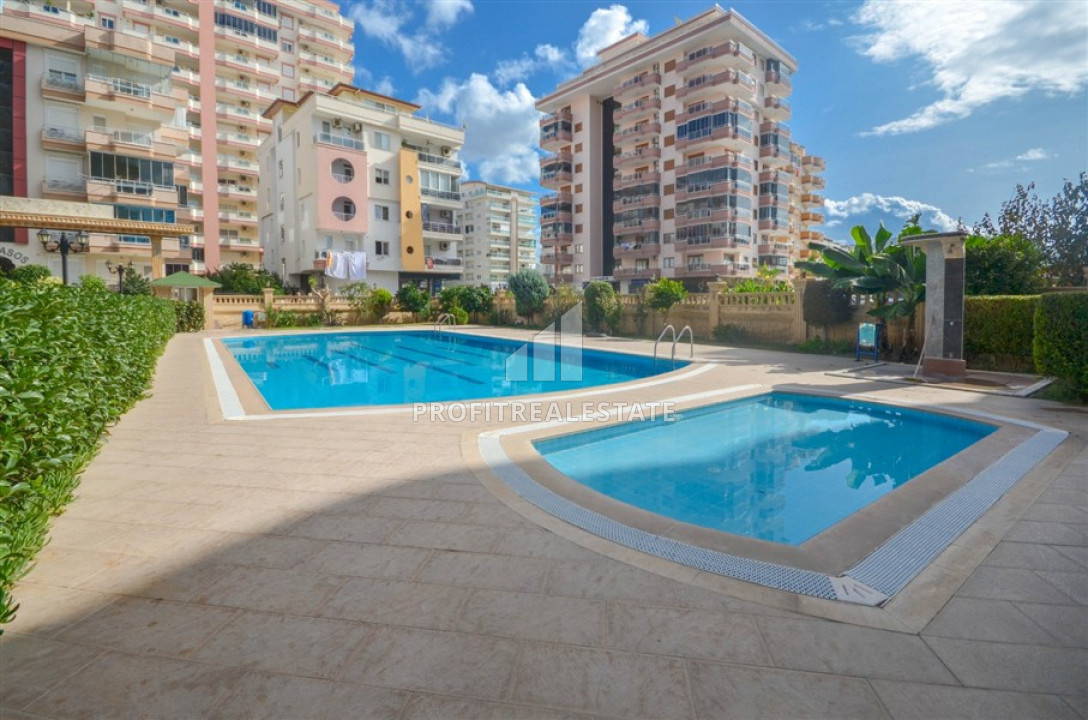 Large furnished two bedroom apartment on the main street of Mahmutlar with sea view