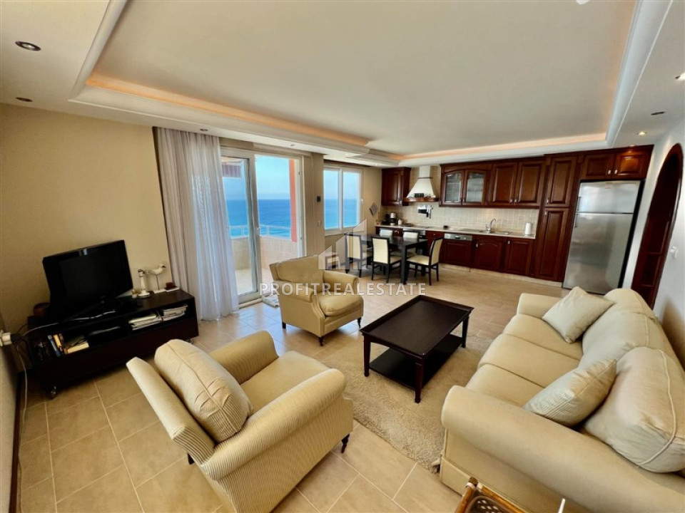 Large view apartment with two bedrooms on the first line in Mahmutlar