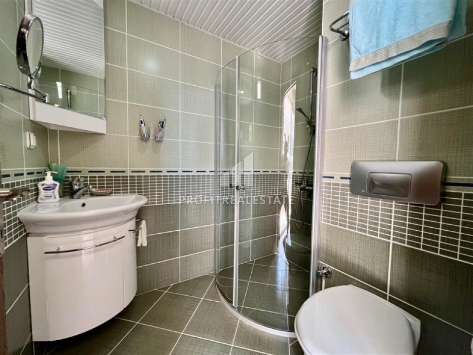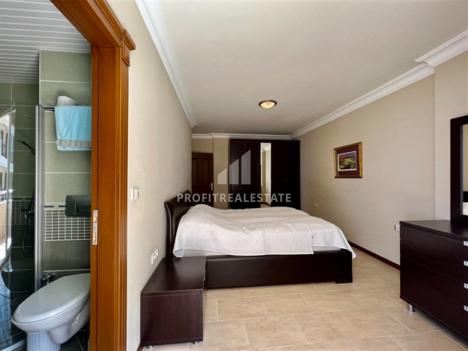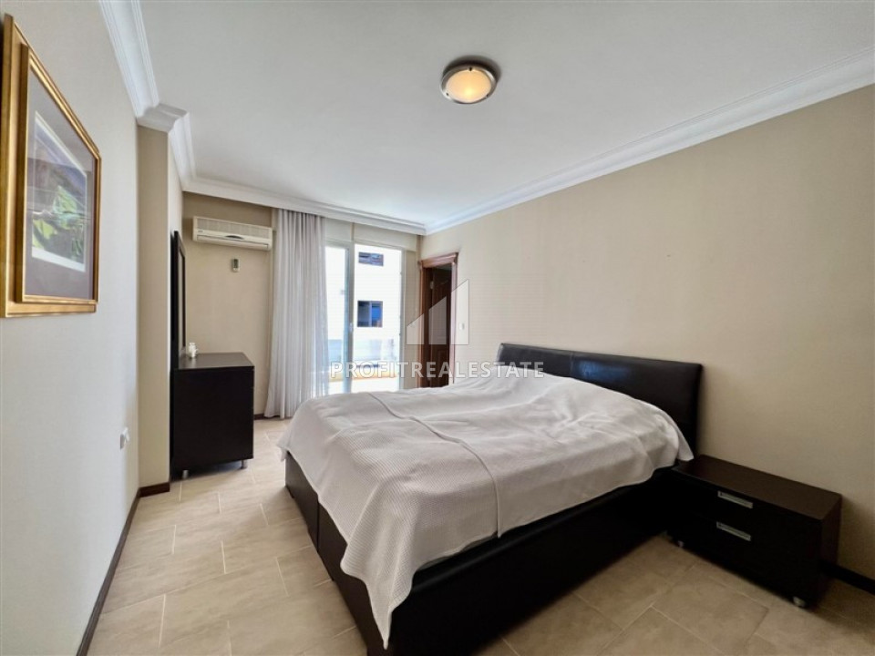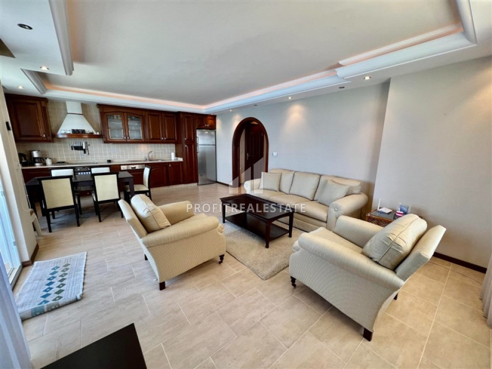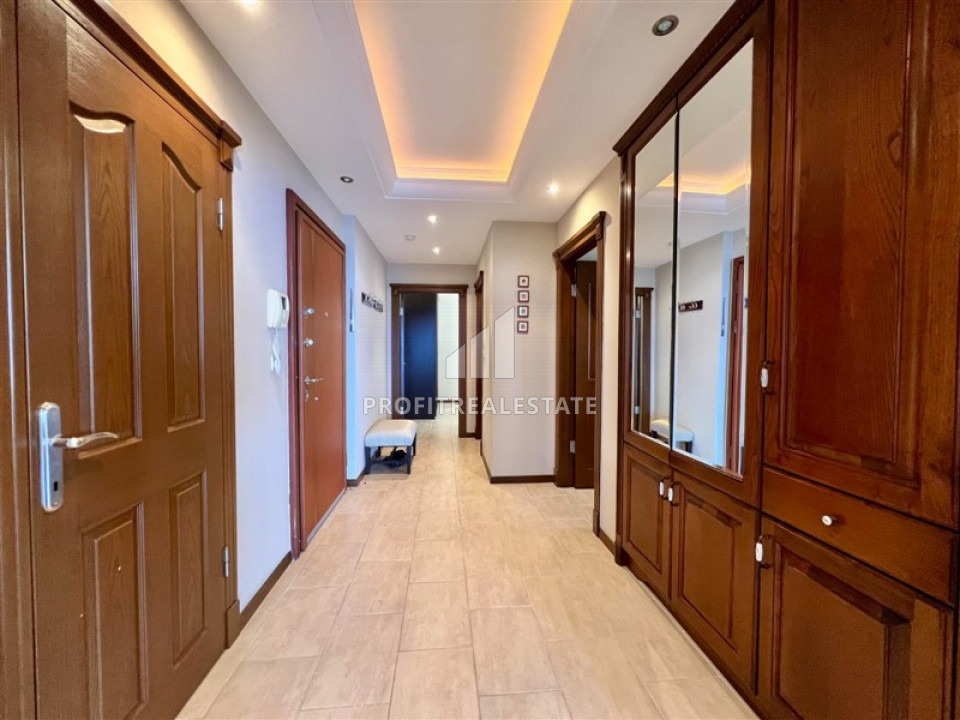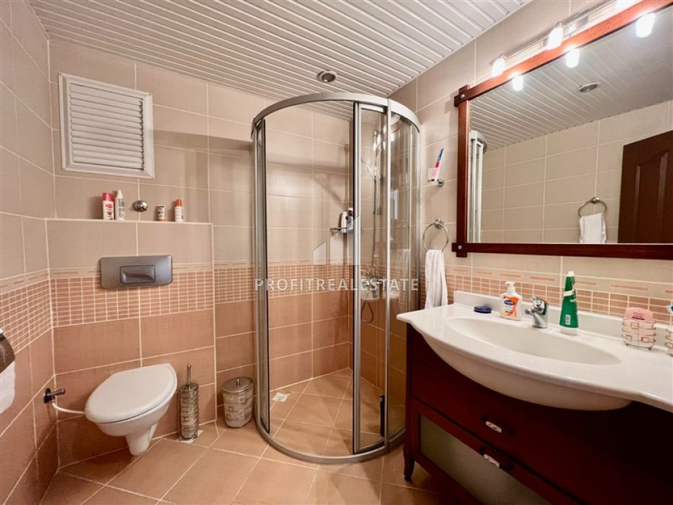 The apartment, layout 2 + 1 with a southeast direction and a total area of 135m² has a spacious living room combined with a large kitchen area. In the recreation area there is high-quality upholstered furniture, a TV set on a cabinet, a coffee table. Kitchen - with a full set of appliances, plenty of storage space for kitchen utensils, granite countertops with a spacious work area. Nearby is a dining area for 6 people. The bedrooms are furnished with all necessary furniture. There is a spacious wardrobe for outerwear and shoes in the large hallway. Two spacious bathrooms are fully equipped with quality furniture and fixtures, there is a small laundry room in the hallway. From the large southern corner balcony offers a "million-dollar view": the endless expanse of the Mediterranean Sea, turning into the horizon. With a cup of tea or coffee, you can admire the sea, stunning sunsets and the Alanya fortress, which is beautifully illuminated in the evening. From the eastern balcony you can see not only the sea, but also, no less beautiful, the Taurus Mountains.