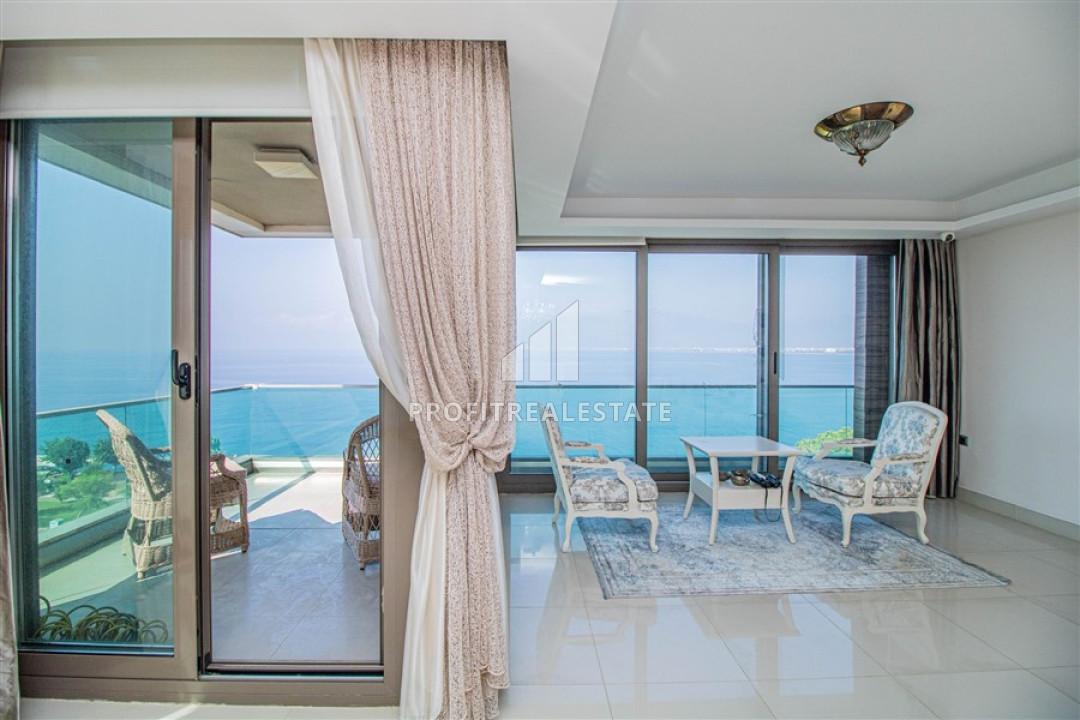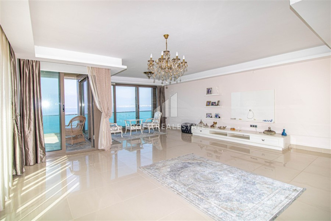 Are you looking for a large apartment by the sea? We have prepared an amazing offer for you! For sale from the owner put up a five-room duplex, which has a number of significant advantages. Firstly, not just large, but very large total area - 400 m2. Secondly, stunning sea views that will open to you from every window and balconies. Thirdly, the convenient location of the residence is only 20 meters from the sea and 500 meters from the center of the Yesilbahce microdistrict, which is part of Lara region. Fourthly, the “Smart Home” system installed in the apartment and a lock with face recognition.