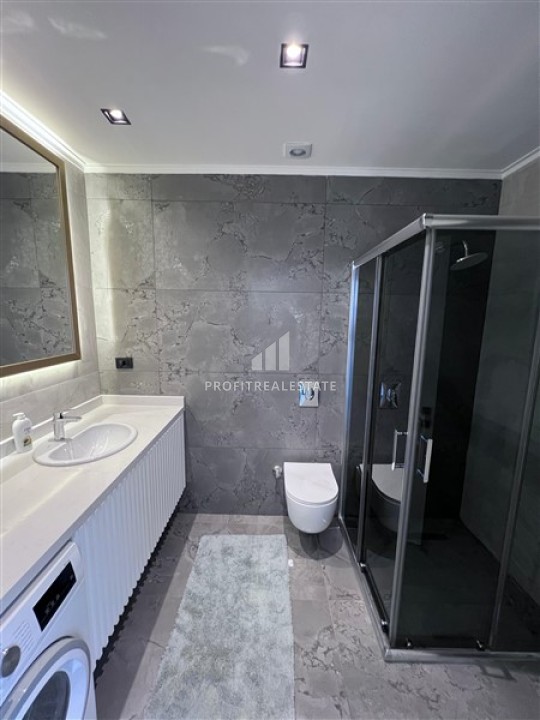We present to your attention a new spacious 1+1 apartment without furniture, but with high-quality finishing and a stylish built-in kitchen unit. The apartment with a total area of 68 m² is located on the 3rd floor of a new luxury residence in the prestigious area of Alanya - Kargicak. The apartment has one bedroom, an Open plan kitchen with built-in premium quality kitchen units, one bathroom and a practical balcony. All windows offer stunning panoramic views of the Mediterranean Sea. Despite the fact that the apartment is sold unfurnished, it has been finished with high-quality materials, floors have been laid, walls have been painted, kitchen units, air conditioners, entrance and interior doors, double-glazed windows and bathroom equipment equipment in the bathroom have been installed. All you have to do is purchase furniture and household appliances to your liking.
