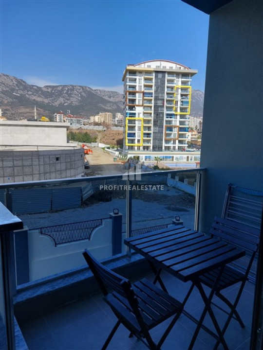 In Mahmutlar, just 500 meters from the sea and 150 meters from the center of the district, in 2021, the construction of a new luxury residence was completed, represented by two residential blocks and a developed internal facilities. And today we want to offer you a one bedroom apartment, which is part of this residence. It located on the first high floor of a residential building, and, with an area of 58 square meters, includes a living room with an American style kitchen, a bedroom, a bathroom and a balcony overlooking the mountains. It should be noted that the apartment have a high-quality fine finish, bathroom equipment equipment has been installed. In addition, it is fully furnished. All this is included in the declared price.
