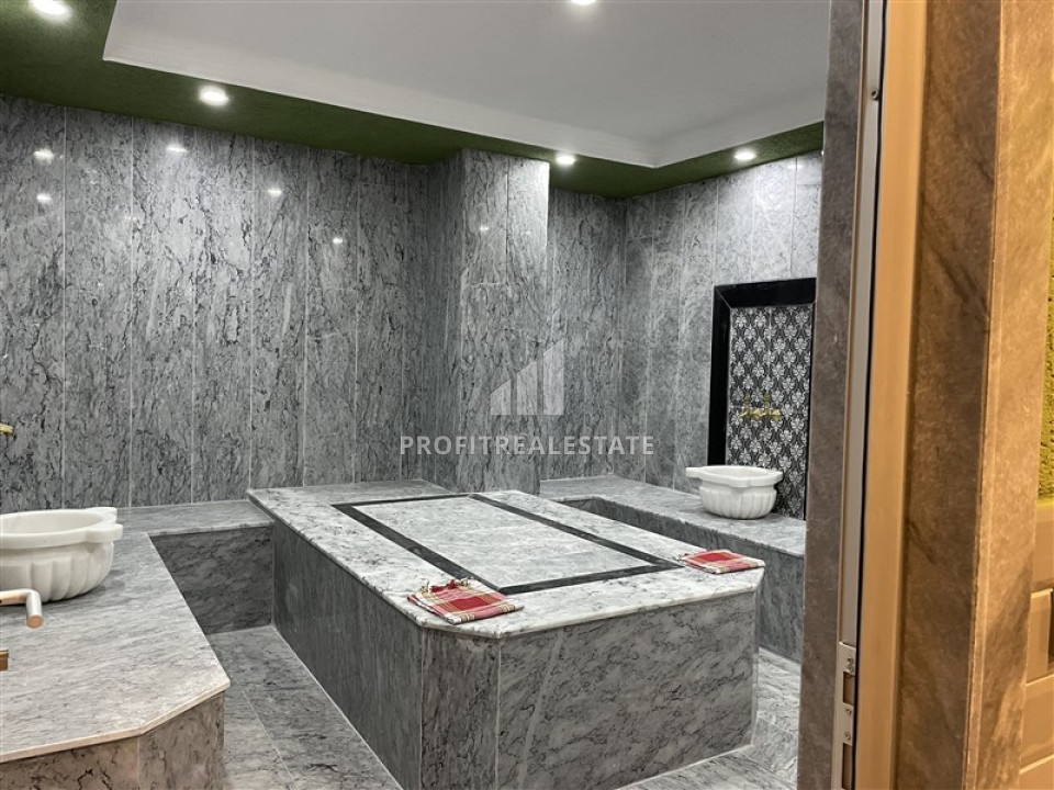 The layout provides for a living room combined with a kitchen area, one bedroom, a small hallway, a bathroom and a spacious balcony with equipped storage spaces and a seating area. The living room has nice upholstered furniture. The kitchen is equipped with a kitchen set with a granite countertop, a complete set of household appliances and is separated from the recreation area by a bar that acts as a dining area. The bathroom has all the necessary high-quality sanitary ware and furniture. The balcony offers an excellent view of the ancient city of Naula and the Taurus Mountains, and this view will never change, since the ancient city is protected by the state as a cultural heritage.