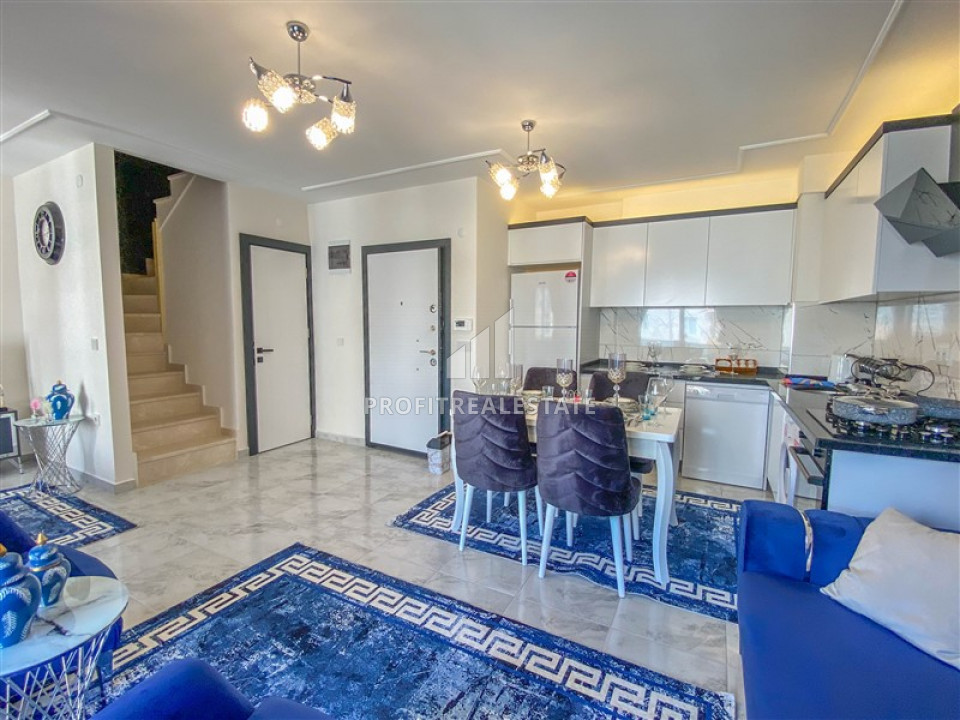 Prefer a new home by the sea? But at the same time, you are not ready to spend time and additional funds on the interior? We have prepared a great offer for you! A two bedroom duplex apartment is for sale from the owner, which is part of a residence built in 2022. At the same time, there is a very convenient location - only 400 meters from the sea and 50 meters from the center of Mahmutlar, Alanya. As for the internal facilities, it is represented by a landscaped garden, an outdoor swimming pool, a sauna and a fitness room. In addition, parking for cars is equipped here, and the house will be equipped with a modern elevator.