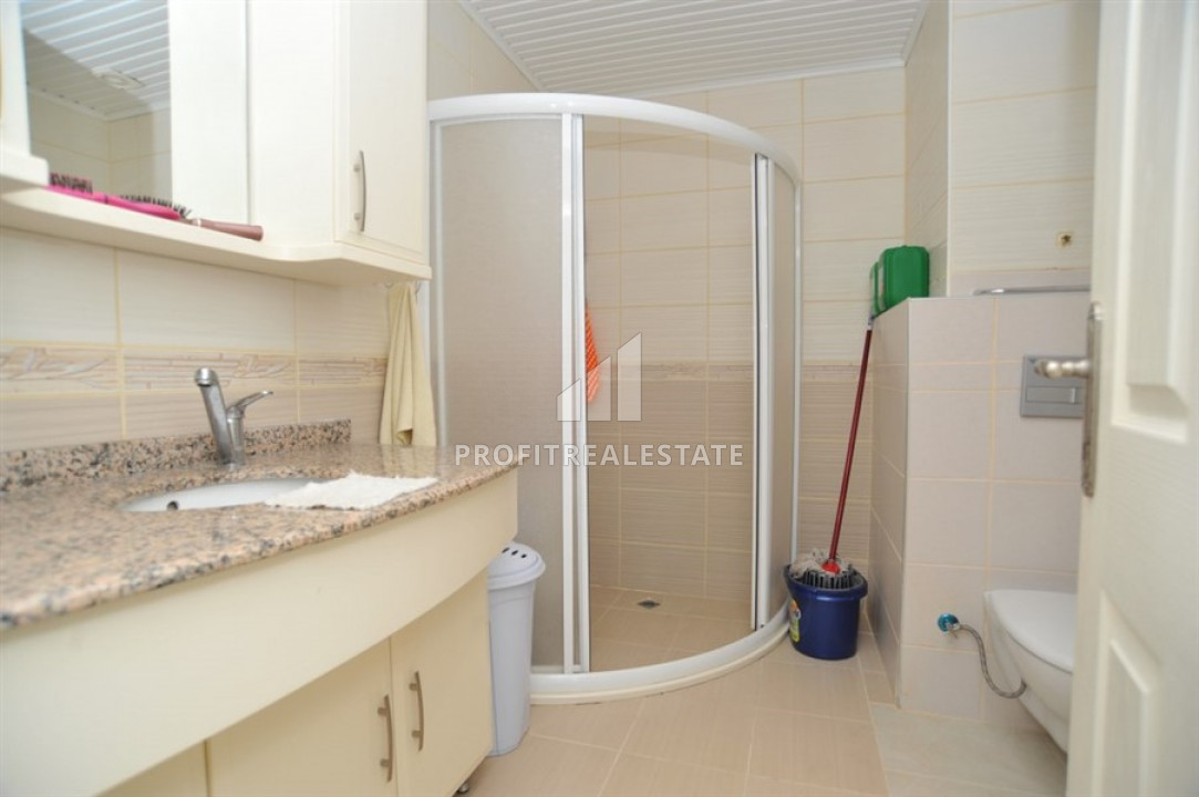 The layout of the apartment provides for four furnished bedrooms (one of them is furnished as a second living room), a spacious living room combined with an open kitchen, with all necessary furniture and household appliances, two fully equipped bathrooms (one on each floor), a large entrance hall with stairs to the second floor of the apartment. The duplex has one very large corner balcony on the lower floor, which, if desired, can be glazed with a terrace of the same size on the upper one. From the balcony and terrace you have a beautiful view of the unforgettable Taurus Mountains. The price of the apartment includes all the necessary furniture, household appliances and equipped bathrooms, as in the photo. It will be up to the future owners to make changes to the interior, to give this spacious apartment coziness and charm. If you need help decorating your apartment, our after-sales staff will be happy to provide it.
