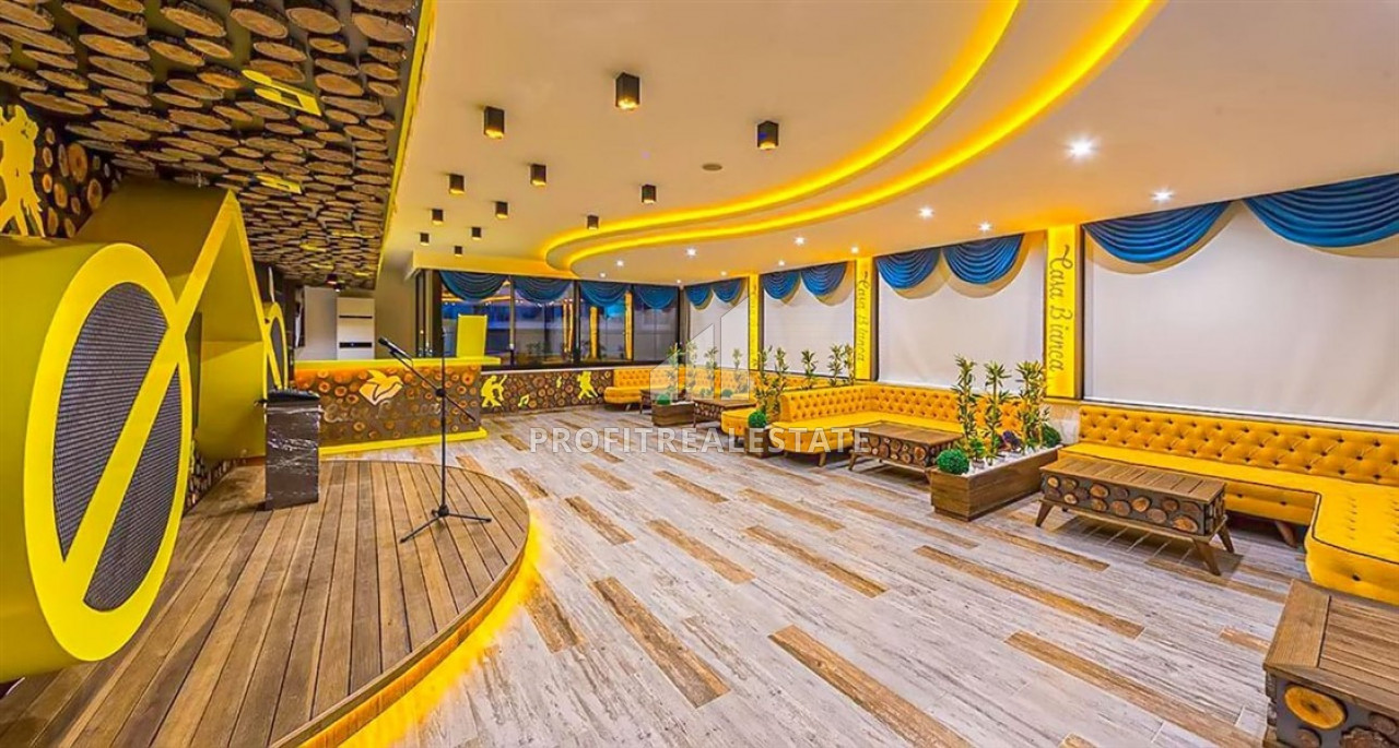 In Mahmutlar, one of the most dynamically developing areas of Alanya, a stylish one-bedroom apartment with a total area of 65 sq. meters. It located on the 7th floor and is part of a residential residence built in 2017, at a distance of 300 meters from the sea and 200 meters from the center of the area. With a 1 + 1 layout, the apartment include two adjacent rooms, one of which is a bedroom, and the second is a living room combined with an open-type kitchen. In addition, here you will find a bathroom with shower, and two balconies. We also want to draw your attention to the magnificent interior - high-quality fine finish, stylish design with bright color accents, furniture, decorative elements and modern household appliances. All this is included in the declared price and makes the offer very profitable. After all, you do not have to spend additional money and time on household chores to equip your home by the sea.