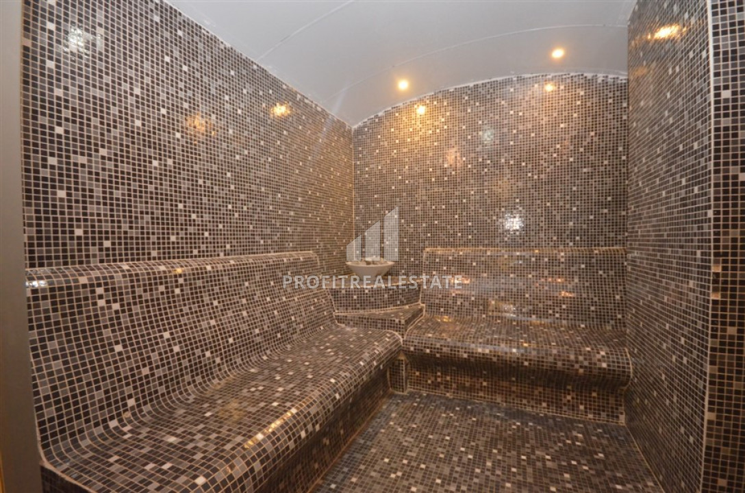 The apartment is located on the 9th floor, but this will not be a problem, as the house is equipped with a modern elevator. As for the residential residence, it was built in 2015 and will amaze you with its organic design and well-developed internal facilities. Among the services provided by the owners, it is worth noting an outdoor pool with sun loungers and umbrellas, a picnic area, a fitness center, a sauna, and a jacuzzi. A beautiful green garden with landscaping, walking paths and a decorative mini-fountain is planted on the adjacent territory. The generator will save you from problems with electricity, and the manager keeps order. And, of course, one of the significant advantages will be the location of the residence - the distance to the sea will be only 300 meters, and to the center of Mahmutlar - 350 meters. Accordingly, all socially significant objects of the district are within walking distance, including shops, banks, restaurants, bus stops, as well as farmers' markets that come to Mahmutlar on Tuesdays and Saturdays.