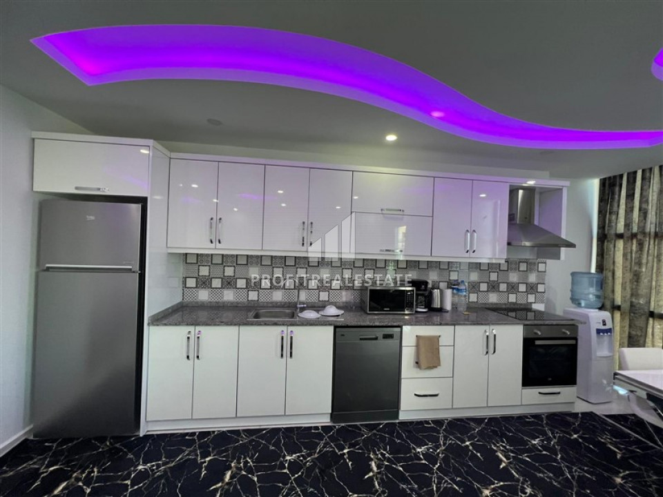 In Mahmutlar, one of the most popular areas of Alanya, a three bedroom apartment is for sale from the owner, located in an excellent residential residence, commissioned in 2018. Located on Ataturk Street, just 400 meters from the well-maintained beaches and 200 meters from the center of the area, it offers owners a wide range of services, including an outdoor swimming pool, a children's pool, and an indoor heated pool. In addition, the doors of the Turkish hammam and sauna will always be open for you, and sports fans will undoubtedly appreciate the presence of a fitness room. Also, on the territory of the residence there is an open parking lot for cars and, thus, you will avoid problems with parking. You also should not be afraid of a power outage, as its uninterrupted supply will be provided by the generator.