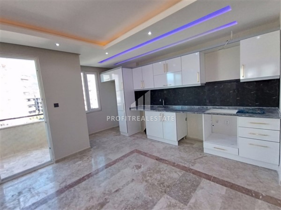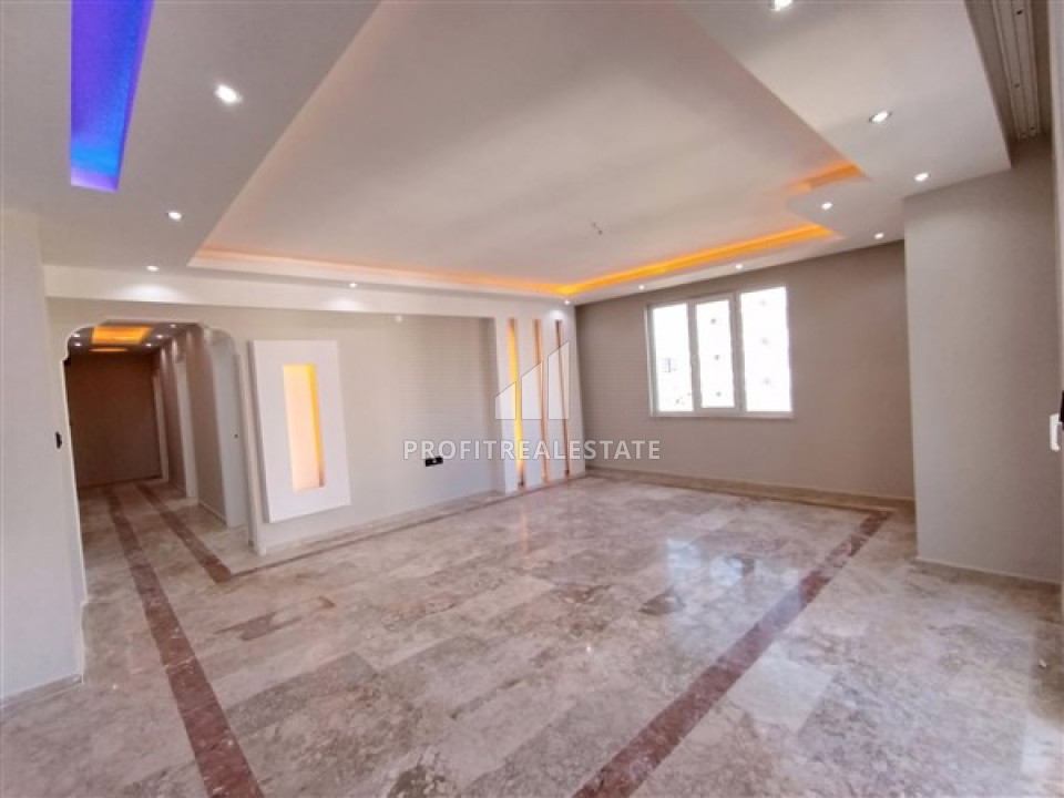 We bring to your attention a spacious three bedroom apartment located in Mahmutlar, a district of Alanya, which is especially popular among Russian-speaking property buyers. With a total area of 140 m2, the apartment has a 3 + 1 layout and includes an entrance hallway, three bedrooms, a living room combined with an open-type kitchen, two bathrooms and two balconies that offer mountain views. It is worth noting that the residential area has been beautifully renovated, and spotlights and LED lighting have been installed on the designer two-level ceilings. In addition, the same lighting is on the walls. Also, the declared price already includes kitchen cabinet furniture.
