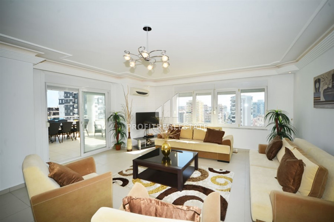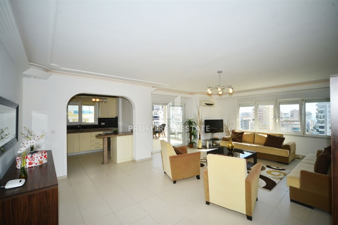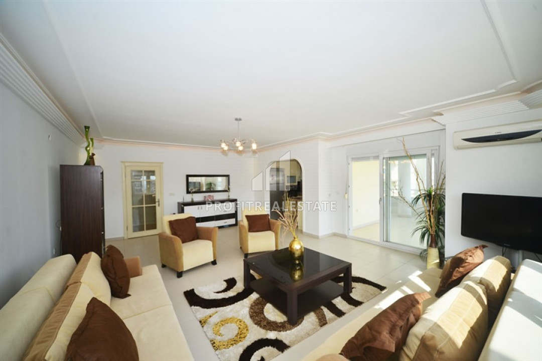 For sale from the owner put up a two bedroom apartment, with a large total area of 135 m2. It located on the 4th floor and is part of a well-maintained residence built in 2008, at a distance of 500 meters from the sea and 300 meters from the center of Mahmutlar, Alanya. The apartment have a convenient layout, which provides for a living room, conditionally combined with a kitchen - since the kitchen area is located in a niche, it is visually separated from the recreation area. In addition, here you will find two bedrooms, two bathrooms equipped with showers, and two large balconies overlooking the urban landscape and internal facilities. Note that the apartment is sold with a full set of furniture and household appliances presented in the photo. All this is included in the declared price and makes the offer more profitable.