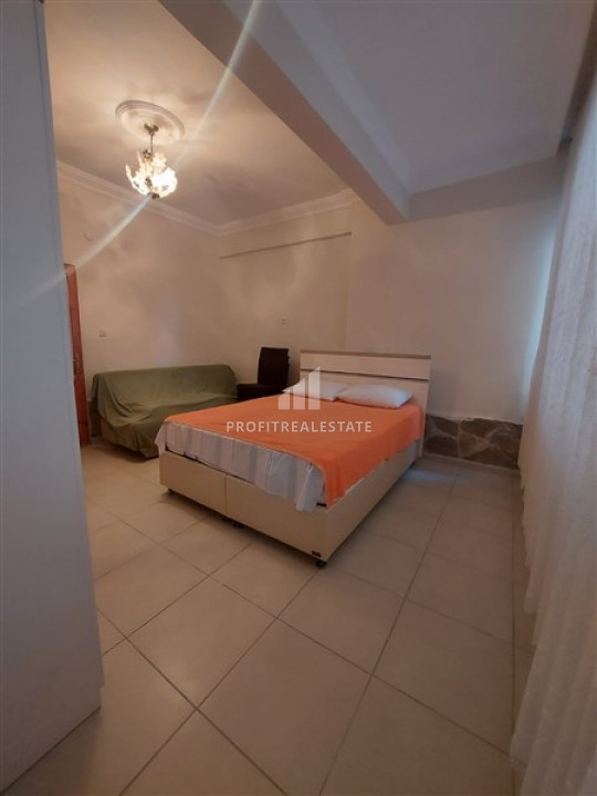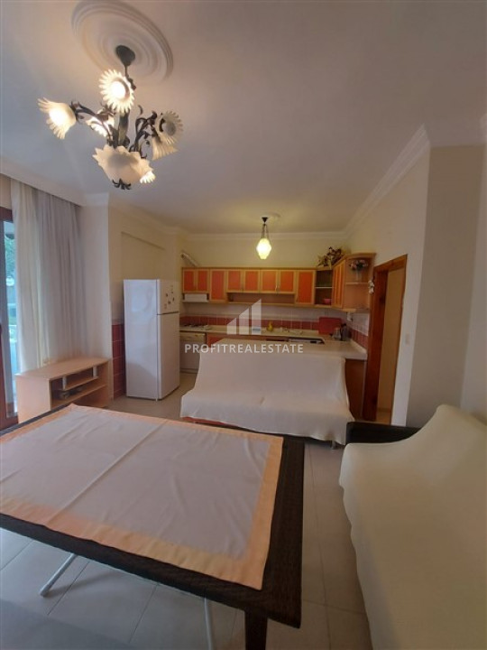 In Mahmutlar, a popular area of Alanya, a two bedroom apartment with a total area of 105 m2 is for sale from the owner. It located on the lower ground floor and is part of a residential residence located just 50 meters from the sea and 500 meters from the center of the area. The apartment have a 2 + 1 layout, which includes a bedroom, a living room combined with a kitchen, a bathroom equipped with a shower, and a balcony overlooking the garden. It is noteworthy that the price of the apartment already includes all the furniture and household appliances shown in the photo, and you will be able to avoid additional costs associated with its arrangement.