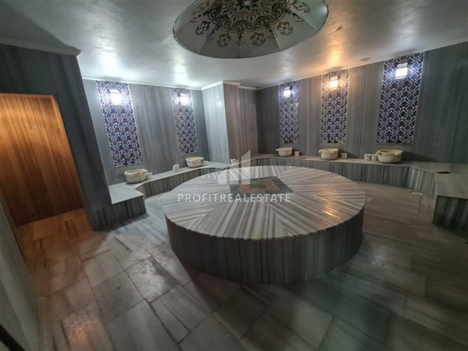 In the center of the atmospheric district of Mahmutlar and just 200 meters from the sea, a spacious two bedroom apartment with a total area of 125 m2 is offered for sale by the owner. They are located on the 8th floor and are part of a residential residence built in 2015 and with full facilities. In addition to indoor and outdoor swimming pools, here you will find a gym, sauna, hammam, massage rooms, an electric generator. On a large green area there is a playground and a place for barbecue and relax. Given the high floor, the presence of an elevator will be important. The concierge keeps order.