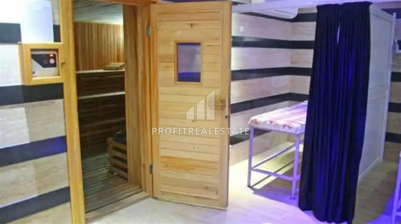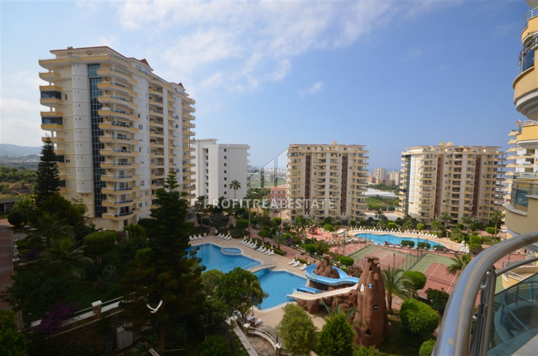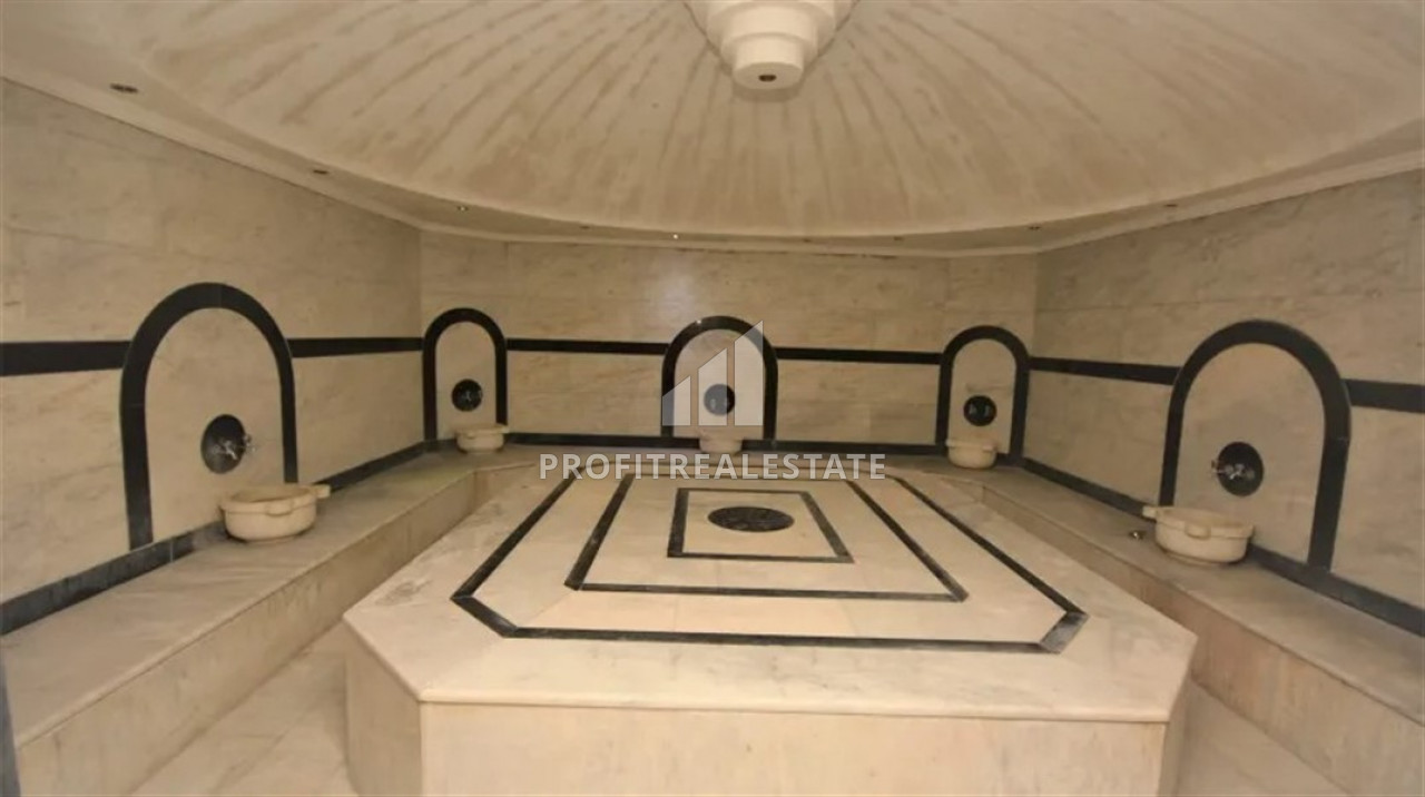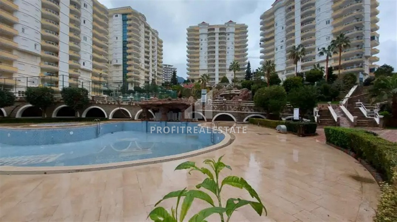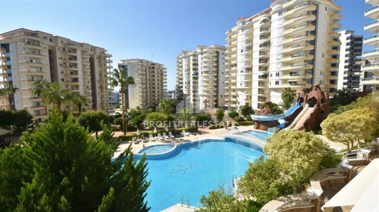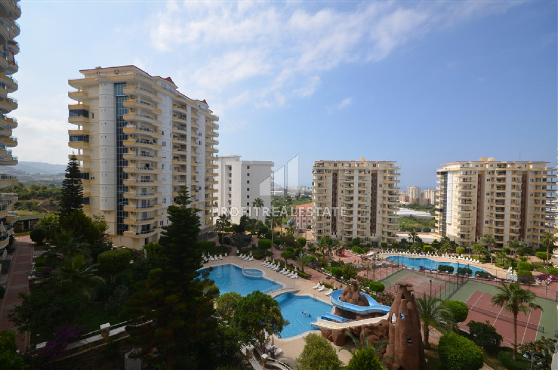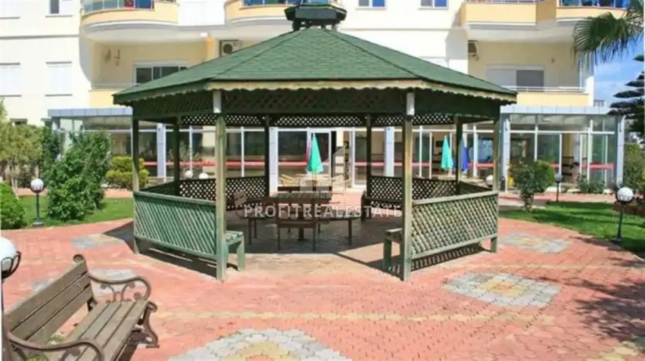 The apartment located on the 4th floor of a residential building built in 2006. As for the residence, it is located 1000 meters from the sea and 500 meters from the center of Mahmutlar and has a complete internal facilities. Among the services provided by the owners, it is worth noting: an outdoor swimming pool with an aqua park and a bar, a children's pool, an indoor heated pool and a sauna, a gym, a basketball court, a tennis court and billiards, table tennis parking, an electric generator. For the little ones there is a playroom and playground. In addition, satellite TV and Internet access are provided. It is worth mentioning the inner territory - it impresses with its magnificent park architecture, stylized as cultural and historical sights, and a large number of decorative fountains. The residence is under round-the-clock security, and the manager keeps order.