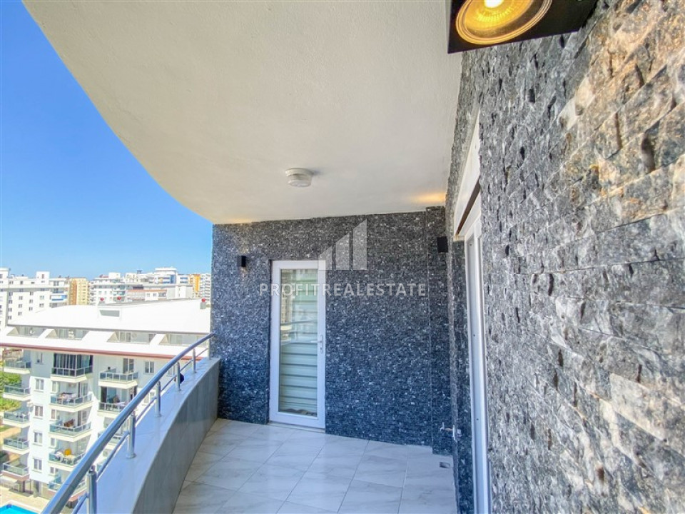 Furnished apartment by the sea at a reasonable price? This is exactly what we have prepared for you today! In Mahmutlar, which is one of the most rapidly developing areas of Alanya, a two bedroom apartment with a total area of 110 square meters is for sale from the owner. It is located on the 7th floor and has a 2 + 1 layout, which includes an entrance hallway, two bedrooms, a living room combined with an open-type kitchen, two bathrooms and a balcony. At the same time, an excellent fine finish is made here, and designer two-level ceilings are equipped with LED lighting. Also, we want to draw your attention to the stylish design, which includes furniture, household appliances and decor elements. All this is already included in the declared price and makes the offer even more profitable.
