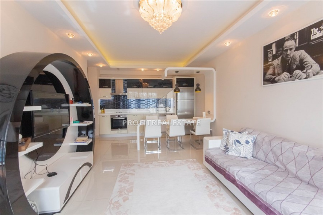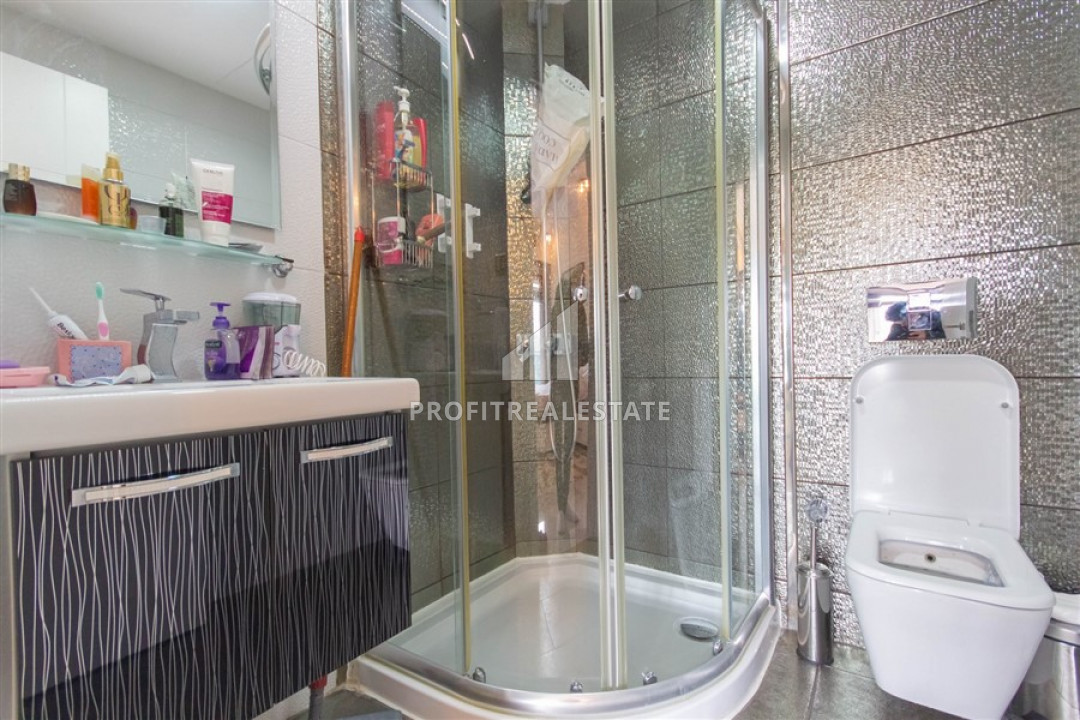 For sale from the owner is a cozy two bedroom apartment located in the elite residence of Mahmutlar, Alanya. With a 2 + 1 layout and a large total area of 110 m2, it includes an entrance hall, a living room combined with an open-type kitchen, two bedrooms, two bathrooms (one with a bathtub, the other with a shower cubicle), and a balcony overlooking the internal facilities. At the same time, the apartment are fully equipped with stylish furniture and household appliances, which, together with decorative elements, are already included in the declared price. Also, a high-quality repair was made here, bathroom equipment and large panoramic windows were installed, filling the living space with sunlight.