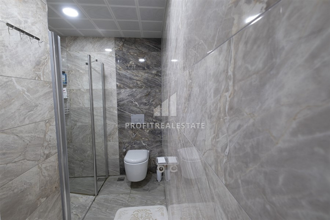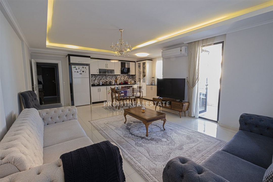 With a 2+1 layout, the apartment consists of two floors with two bedrooms, a large living room with an open-plan kitchen, two bathrooms with showers and two balconies, one of which is glazed. At the same time, the apartment is very bright, a high-quality fine finish is made here and large PVC windows are installed. In addition, the declared price already includes a complete set of furniture and household appliances. You will only have to move into your new spacious house by the sea and enjoy a comfortable life under the sun.